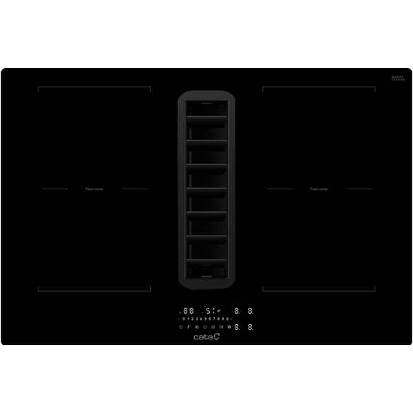 The CATA 77cm 4 Zone Flex Vented Induction Hob combines sleek black glass styling with a powerful integrated extractor for a seamless, modern cooking experience. Its hidden touch slider control and crisp white LED display create a minimalist aesthetic while offering precise, effortless operation. Designed for everyday cooking and professional-level performance alike, this hob makes it easy to manage multiple dishes with speed, control, and convenience.