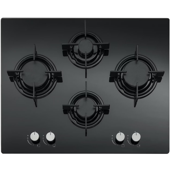 Designed for flexible everyday cooking, this gas on glass hob features four natural gas burners, including powerful rapid burners for fast boiling and high-heat cooking, alongside semi-rapid and auxiliary burners for precise simmering. Automatic electronic ignition ensures effortless start-up, while rotary controls with black knobs and stainless steel caps give you intuitive, tactile control over each burner.